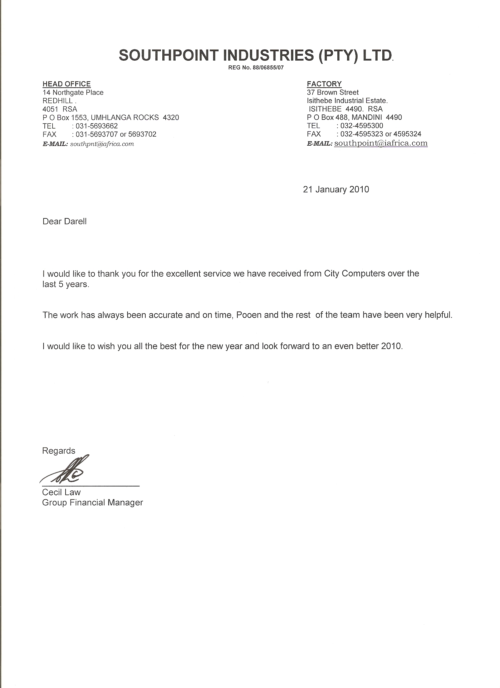 Cecil Law - Group Financial Manager - Southpoint